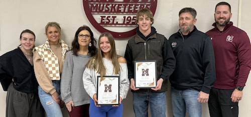 The Red Bud High School athletes for the month of December are Addie Meyer and Max Wolter. Meyer was nominated for cheerleading by Coach Miki Friess. Wrestling Coach Butch Schloemann nominated Wolter.