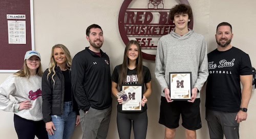 The Red Bud High School athletes for the month of January are Lilly Minemann and Grayson Herriman. Minemann was nominated for basketball by Coach Eli Rogers. Basketball Coach Dane Walter nominated Herriman.
