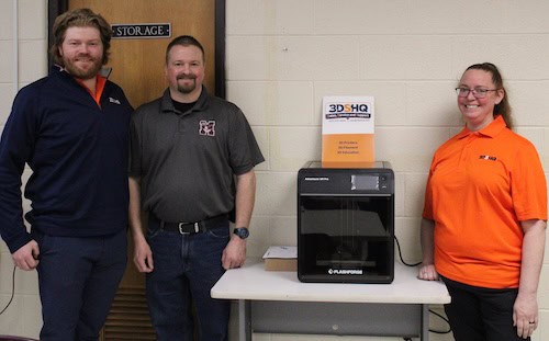 Industrial technology instructor Jared Piel was very excited to share that he applied for and received an education grant from 3DSHQ. The grant award was for a new Flash Forge 5M Pro 3D printer setup and installation in the classroom, along with training sessions for students and faculty on the printer.