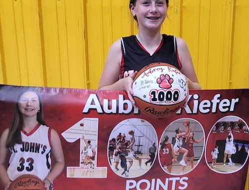 Aubrey Kiefer joined an elite group of athletes at St. John’s Lutheran on Dec. 18, becoming the third player in school history to record 1,000 career varsity points. She is the daughter of Jay and Crystal Kiefer.