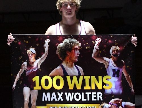 Red Bud High School senior Max Wolter reached a major milestone this season, earning the 100th win of his high school wrestling career. The accomplishment is especially meaningful considering Wolter first stepped onto the mat as a freshman with no prior wrestling experience.