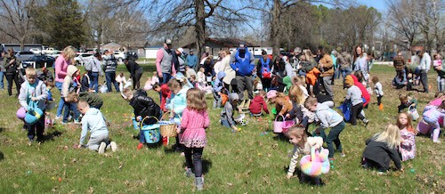 With the good weather, there was a good turn out for the annual Red Bud Community Easter Egg Hunt, hosted by Buena Vista National Bank, on March 28 at Ratz Park. The hunt was broken up into three age groups, and there were plenty of eggs for the kids to gather. Pictured are some of the children in the middle age group out collecting eggs.