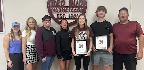 The Red Bud High School athletes for the month of March are Tess Simpson and Seth Hohgrefe. Simpson was nominated for track by coaches Kayla Cook and Trish Richey. Baseball coach David Lucht nominated Hohgrefe.