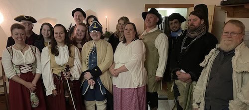 On New Year’s Eve, members of La Guiannee Society gathered once again to sing traditional French songs, including the La Guiannee song. This tradition dates back over 300 years to 1722. Each year, the group travels around the Prairie du Rocher area performing at various homes and businesses. Members of the group are pictured posing at the Creole House.