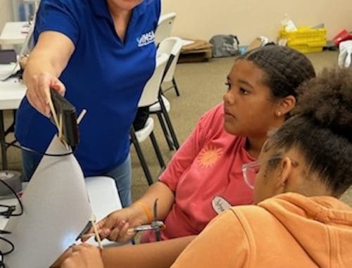 HANDS ON EXPERIENCE–Instructor Hope Blythe assists students Azlynn John and Anaya Rodgers with visualization while repairing a “tendon” during the recent Surgical Skills Experience held at Sparta Community Hospital.