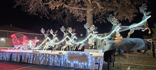 SANTA’S NEW RIDE–Pictured is the sleigh lit up and on display at Santa’s Village.