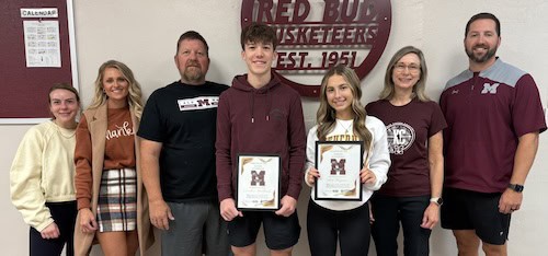 The Red Bud High School athletes for the month of October are Ava Wagner and Landon Ruebusch. Wagner was nominated for cross country by Coach Julie Fehr. Football Coach David Lucht nominated Ruebusch.